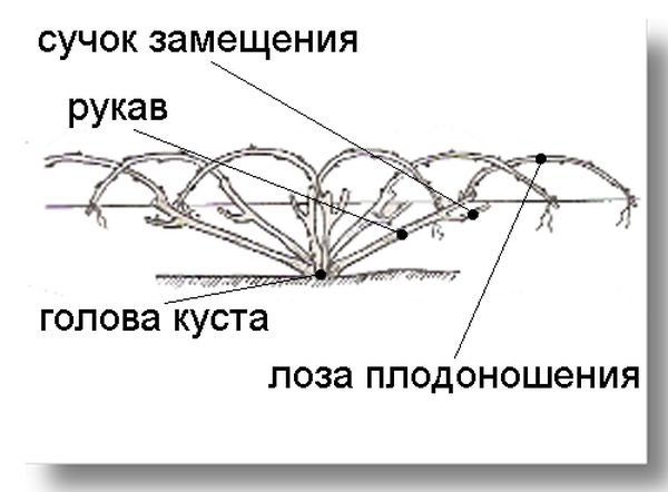L'avantatge d'aquest tipus de formació és que ocupa menys espai al jardí. La màniga és la branca principal que produirà vinyes fructíferes contínuament. El tipus estàndard requereix etapes inicials de desenvolupament que requereixen molta mà d'obra, a diferència del procés de creació d'un sistema de creixement amb mànigues. Caldrà entrenar l'arbust correctament cada any, incloent-hi una poda acurada. Si no es cuida adequadament, la màniga s'esgotarà ràpidament.
