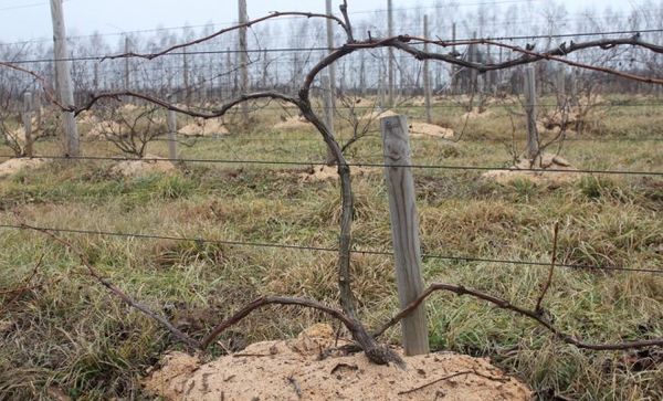Les vinyes es planten a una alçada d'aproximadament 1 m 20 cm, amb només els brots fructífers, que portaran els raïms, lligats a l'enreixat. Això és per evitar que les ratxes de vent dobleguin les vinyes i tombin els baies. Les branques restants es deixen penjar lliurement.